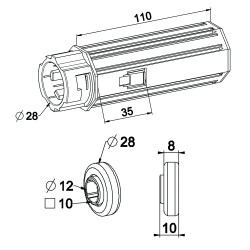 Wysuwana końcówka osi do rury ośmiokątnej 40 mm.