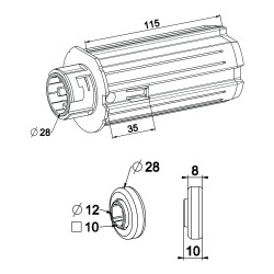Wysuwana końcówka osi do rury ZF 64 z łożyskiem.