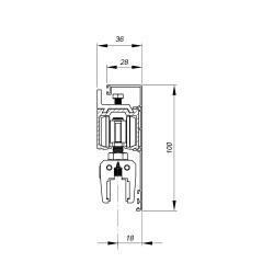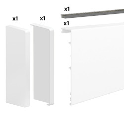 Maskownica systemu drzwi przesuwnych ma długość 201 cm lub 301 cm, wybór długości w polu wariantu. Materiał maskownicy to anodowane aluminium w kolorze białym. Zadaniem maskownicy jest zasłonić, bądź co bądź, niezbyt reprezentacyjne trzewia systemu. Współpracuje ona, ogólnie rzecz biorąc, z systemem z grubszymi drzwiami przesuwnymi. Może to być system SLID'UP 160 i SLID'UP 170 z drzwiami o grubości 26 ÷ 45 mm i, koniecznie, z montażem naściennym oraz długimi klamrami! Maskownica posiada zaślepki boczne i szczotkę wsuwaną 4,8 x 10 mm, w związku z czym, może być znajdować się pośrodku ściany. W przeciwieństwie do maskownicy płaskiej, która wobec braku możliwości zastosowania zaślepek bocznych jest zalecana do montażu między ścianami. Montaż maskownicy jest bardzo prosty. Specjalnie wyprofilowany zaczep górny maskownicy wkłada się w rowek na górnej powierzchni toru jezdnego. Dolny zaczep maskownicy wciska się w rowek w dolnej części toru jezdnego. Można sobie przy tym pomóc uderzeniami otwartą dłonią. Konstrukcja maskownicy umożliwia jej założenie nawet przy dużych nierównościach ściany. Właśnie po to, między maskownicą i ścianą mamy szczelinę dającą niezbędny luz montażowy. Szczelinę tą należy zasłonić szczotką wsuwaną o szerokości stopy 4,8 mm i wysokości włosia 10 mm. Szczotka ta jest w zestawie z maskownicą. Między maskownicą i płaszczyzną boczną skrzydła, patrząc od dołu, również mamy szczelinę, przez którą widać prowadnicę i wózki systemu. Szczelina ta też może być przesłonięta szczotką wsuwaną o szerokości stopki 4,8 mm, jednakże w tym przypadku należy zmierzyć szerokość szczeliny i na tej podstawie dobrać odpowiednią wysokość szczotki.