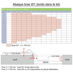 - Dla C ≥ 150 mm: użyj ramion W1 (dostarczanych w zestawie)