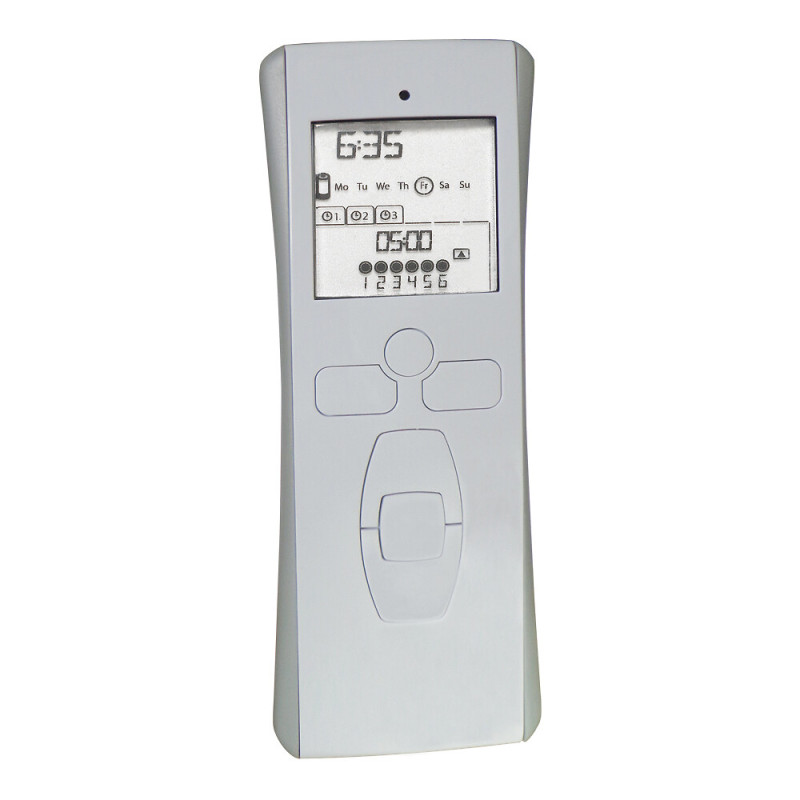 Programowalny pilot radiowy 6-kanałowy z zegarem 433 MHz, umożliwiający sterowanie napędem rolety.