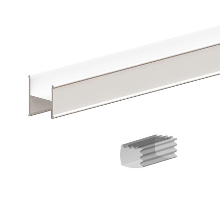 Profil aluminiowy H (profil łączący H18), do łączenia płyt o grubości 18 mm lub do łączenia lustra/szkła za pomocą klinów montażowych o grubości 4-6 mm, stosowany jako wypełnienie drzwi przesuwnych w systemie SLID’UP 280.