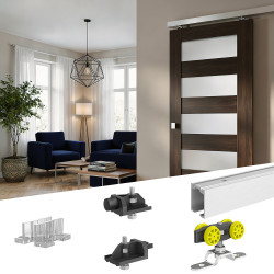 Szukasz niezawodnego i łatwego w montażu systemu do drzwi przesuwnych? Jeśli tak, to system do drzwi przesuwnych SLID’UP 160 idealnie spełni Twoje oczekiwania. Za pomocą zestawu zamontujesz samodzielnie pojedyncze lub podwójne drzwi o maksymalnym ciężarze jednego skrzydła do 60 kG i grubości od 16 do 45 mm. Wbrew pozorom, to łatwiejsze niż myślisz, bowiem do instalacji systemu wystarczą Ci podstawowe narzędzia. W zależności od Twoich potrzeb, możesz wybrać komplet z prowadnicą o długości od 1,5 aż do 3 metrów.