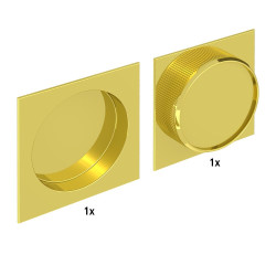 Zestaw 2 kwadratowych uchwytów wpuszczanych ze stali w wykończeniu złotym.
