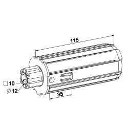 Wysuwana końcówka osi do rury ZF 54 ze sprzęgłem męskim z otworem Ø12 mm.