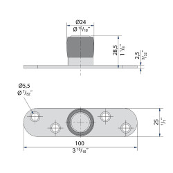 Prowadnica podłogowa z rolką stalową Ø 24 mm na płytce śrubowej